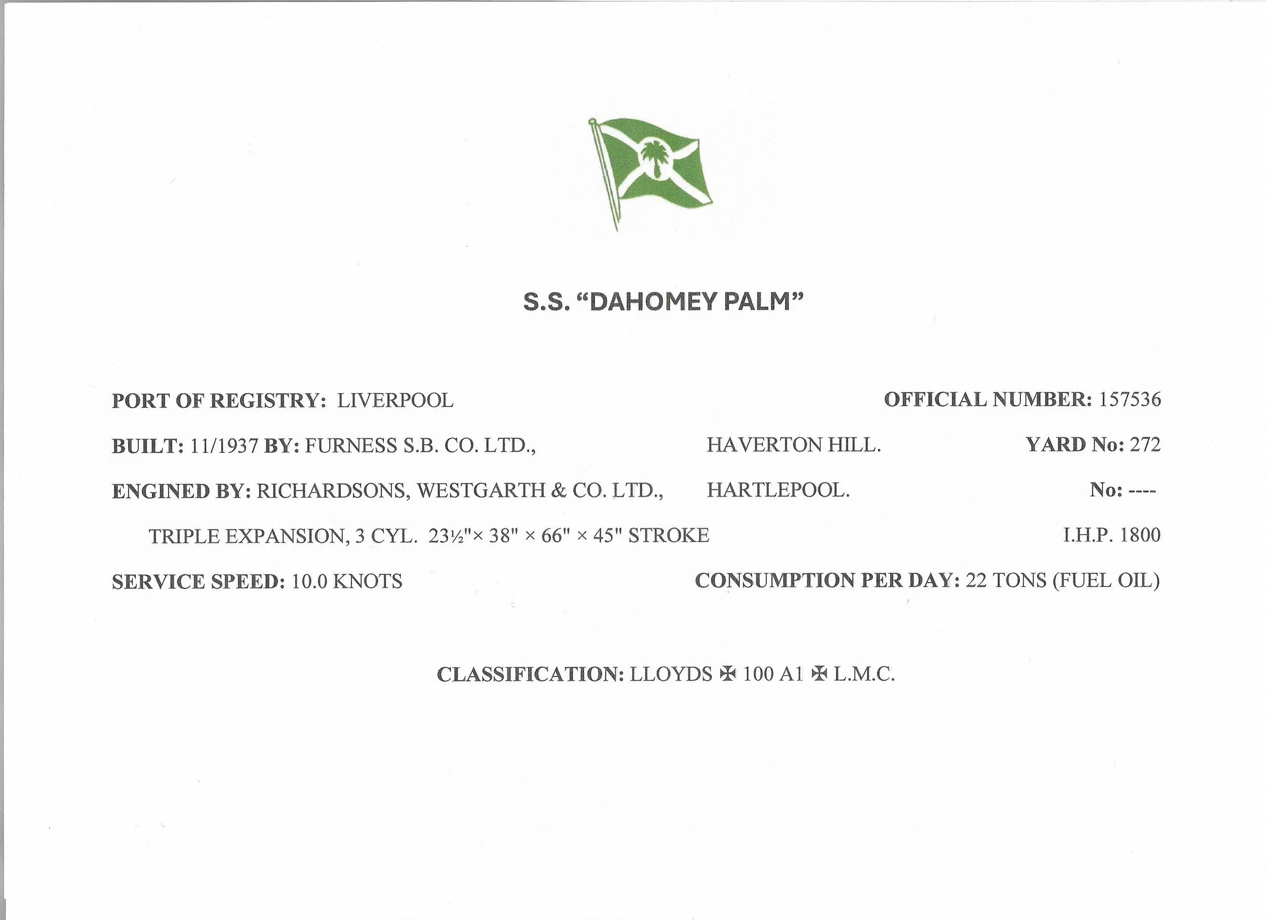 Dahomey Palm ‘37. English Channel 01/06/53. © Fotoflite