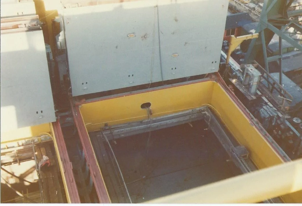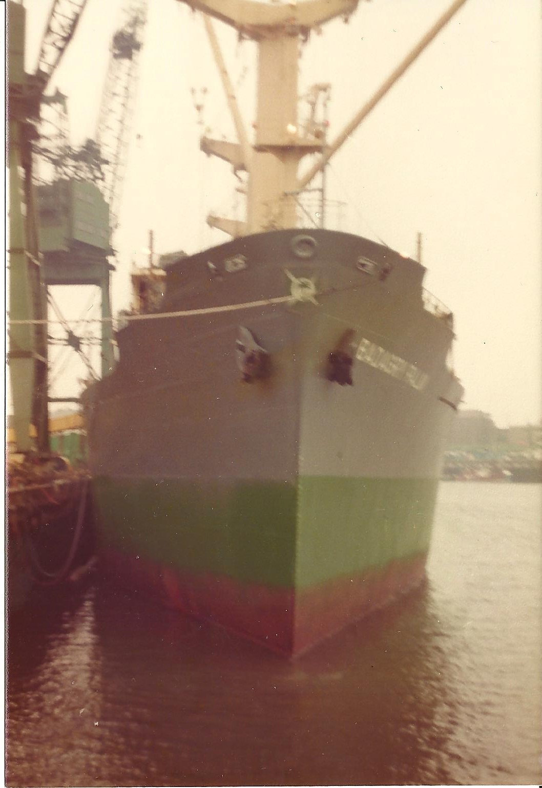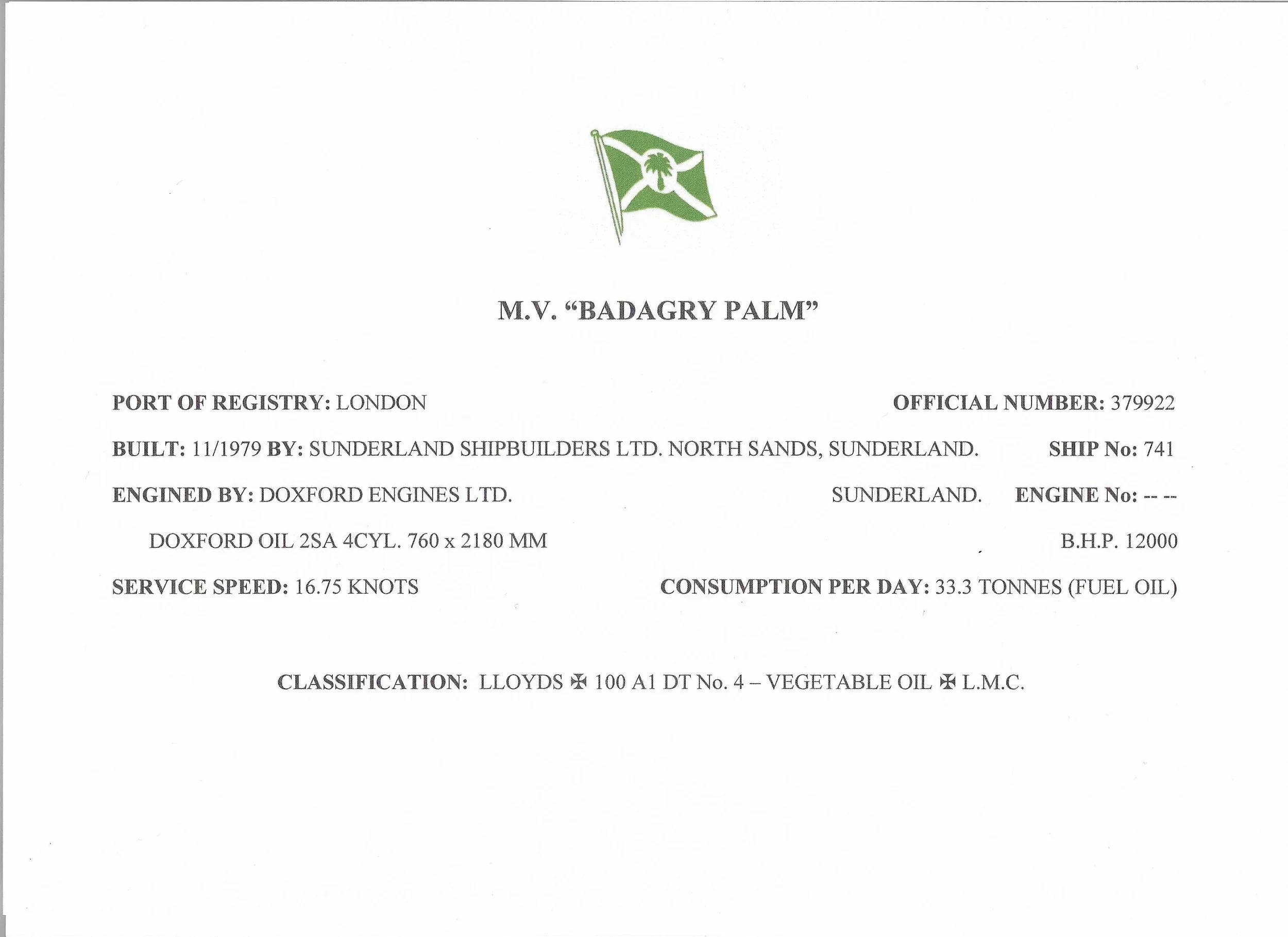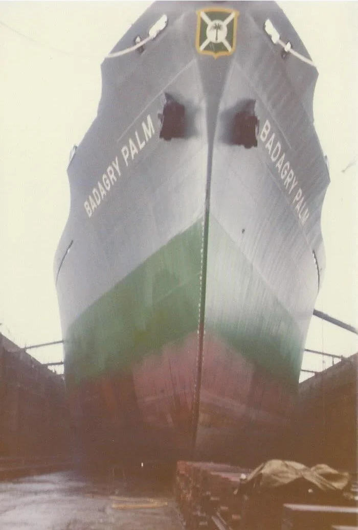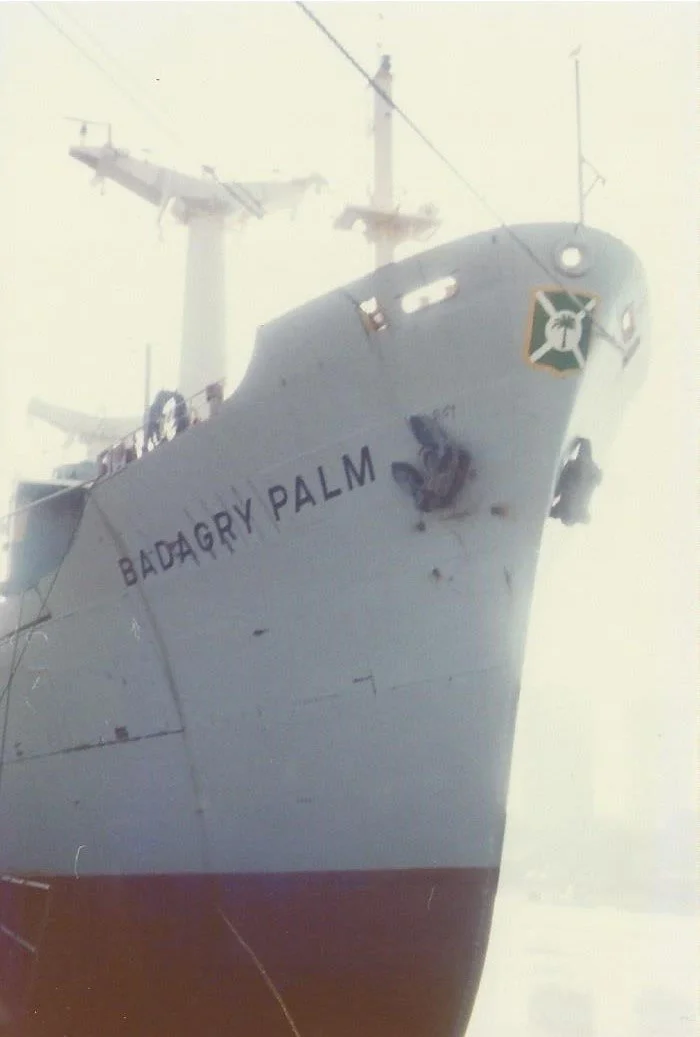 I’m not sure if these images are unique. They are the only ones I’ve ever seen of the Badagry Palm leaving the builders yard to go and load for her maiden voyage 12/11/79. Photos by Graham Hobbins