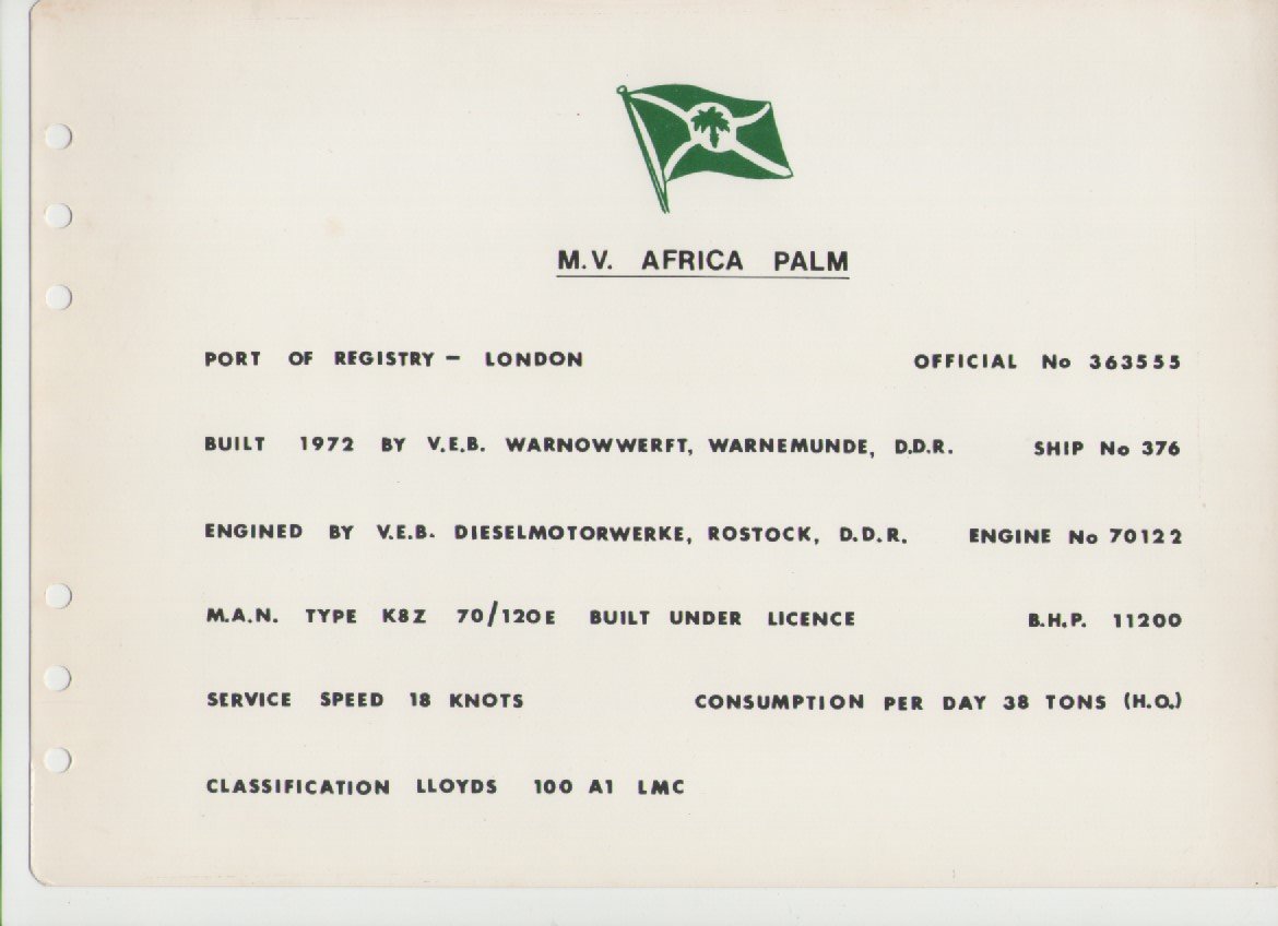 Africa Palm (II). Arriving on the Tyne 07/06/81. © Ken Lubi.