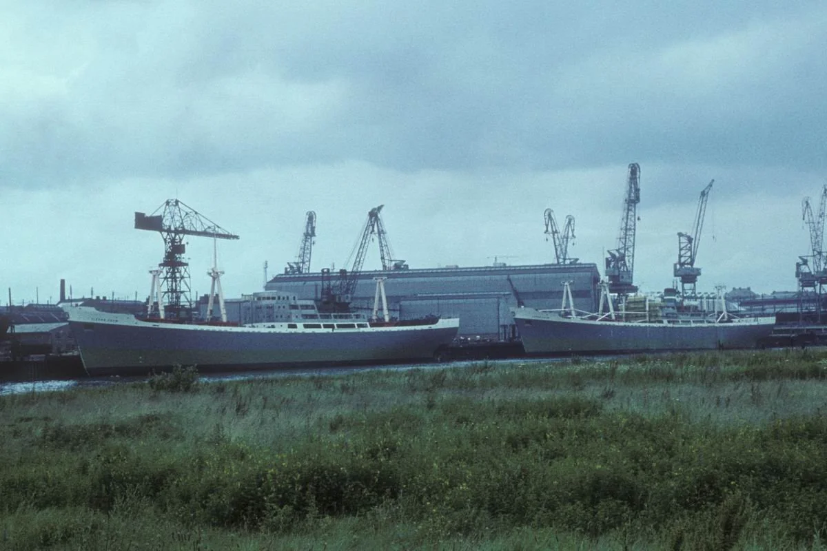 Ilesha Palm (L) & Lagos Palm both 1961 fitting out on the Tyne. © Not known.
