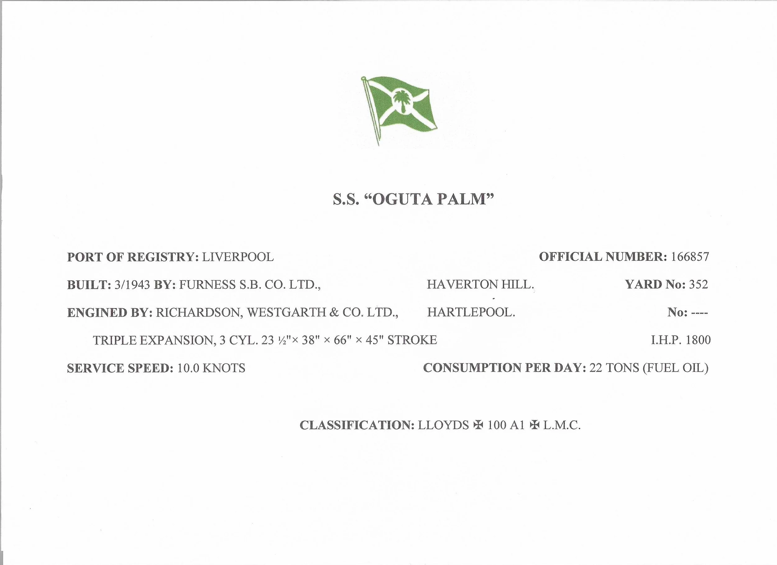 Oguta Palm ‘43 ex-Lafian ‘49. English Channel, date unknown. © Skyfotos (Fotoflite)