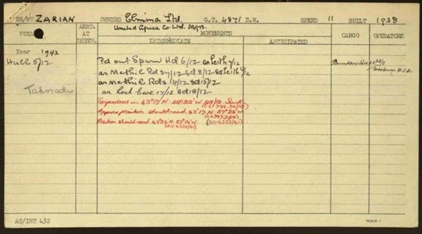 Zarian movement card, courtesy of the national archives at Kew.
