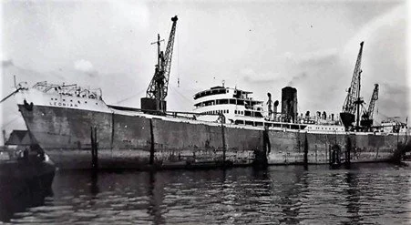 The Guinean was the first vessel to be directly involved in the hostilities. Berthed in St Nazaire in June 1940, on the fall of France, she took on board a significant number of members of the British Expeditionary Force as well as several civilians. During the evacuation there was a moment of panic when a soldier dropped a Mills grenade in the engine room and it rolled between the ship’s two boilers. Fortunately, it was recovered.