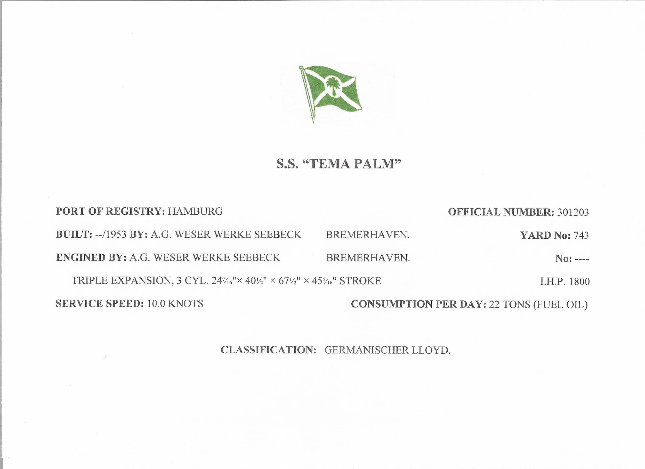 Tema Palm ‘53. Operated by German subsidiary Ölhandel-und Transport-Gellshaft GmbH of Hamburg. ©Not known